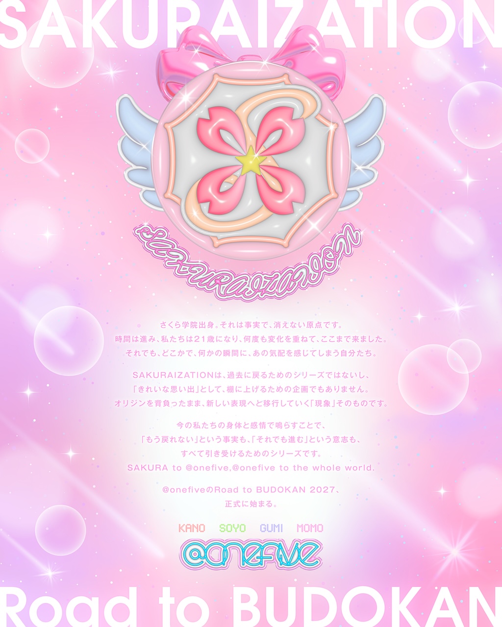 2027年の日本武道館公演を目指すと宣言した@onefiveが、自らのオリジン(原点)を背負い、次なる表現へと昇華させる新プロジェクト「SAKURAIZATION(サクライゼーション)」を始動。
