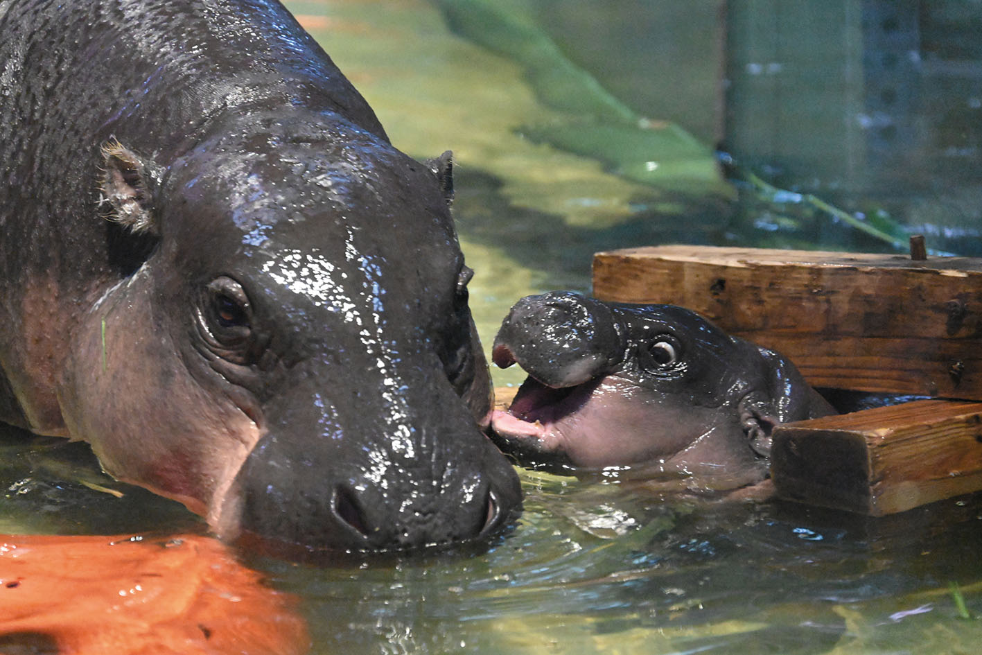 現在、日本では6つの施設に全15頭のコビトカバが暮らしていて、今年3月には上野動物園で、7月には神戸どうぶつ王国で赤ちゃんが誕生しました。上野動物園の「コブシ」はファン投票により名前が決定。神戸どうぶつ王国の「ウタ」は専用Instagramが開設されると瞬く間にフォロワーが8000人を超えました。全国から多くのファンが2頭の成長を見守っています。