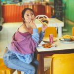 〝とっておき〟のカットが、ケアンズ市街にあるカジュアルなモーテルで窓越しに撮影された一枚。また、ケアンズ郊外のダイナーでハンバーガーに笑顔で頬張るキュートなカットも先行公開しています。