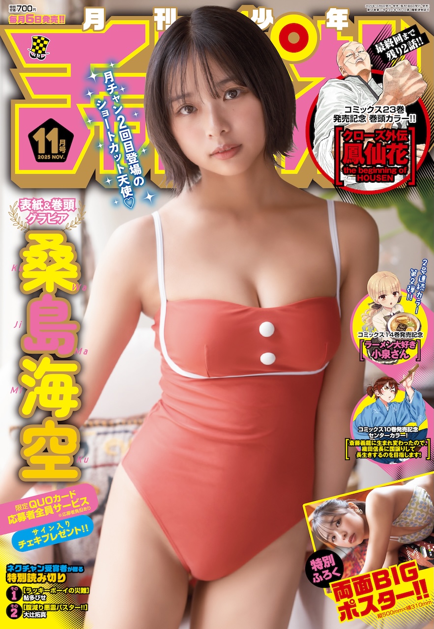 10月6日(月)発売の漫画誌『月刊少年チャンピオン』11月特大号では、表紙&巻頭グラビアに桑島海空が登場。