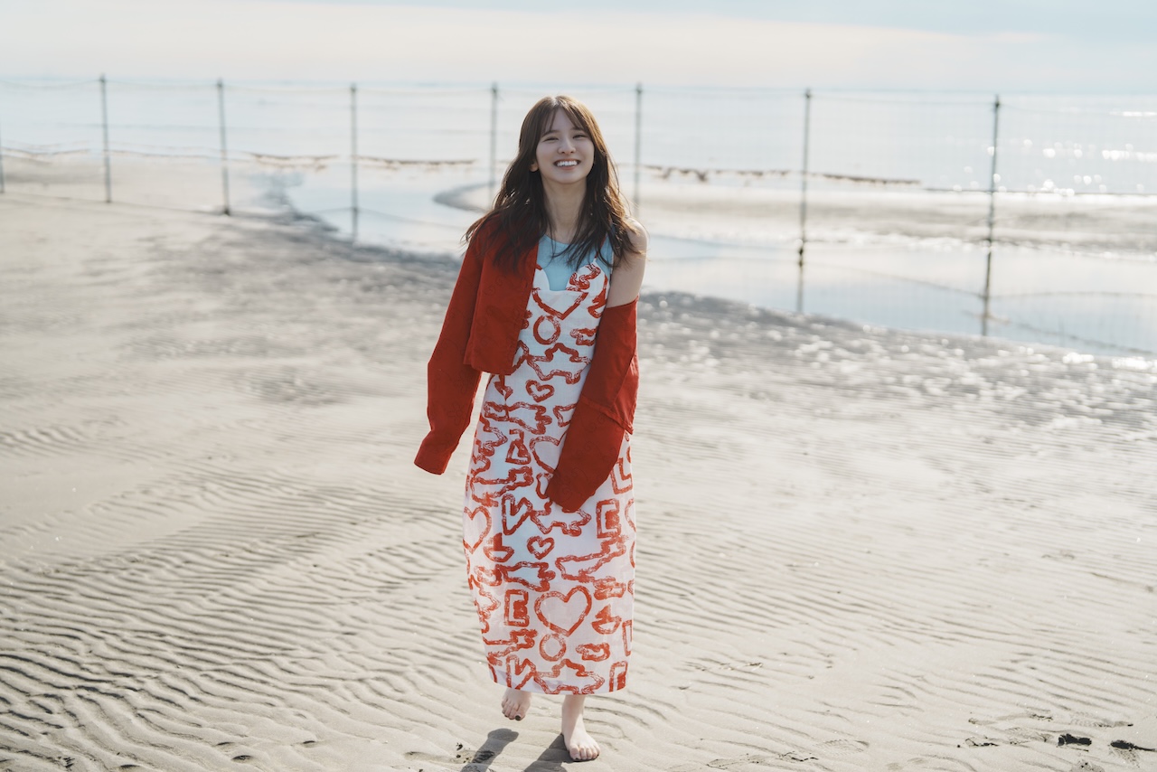 ピュアな魅力を引き出す自然光が美しい白い空間から、清々しい青空が広がる海辺でのカットに加え、夜の街へでは品のある艶やかな表情も。