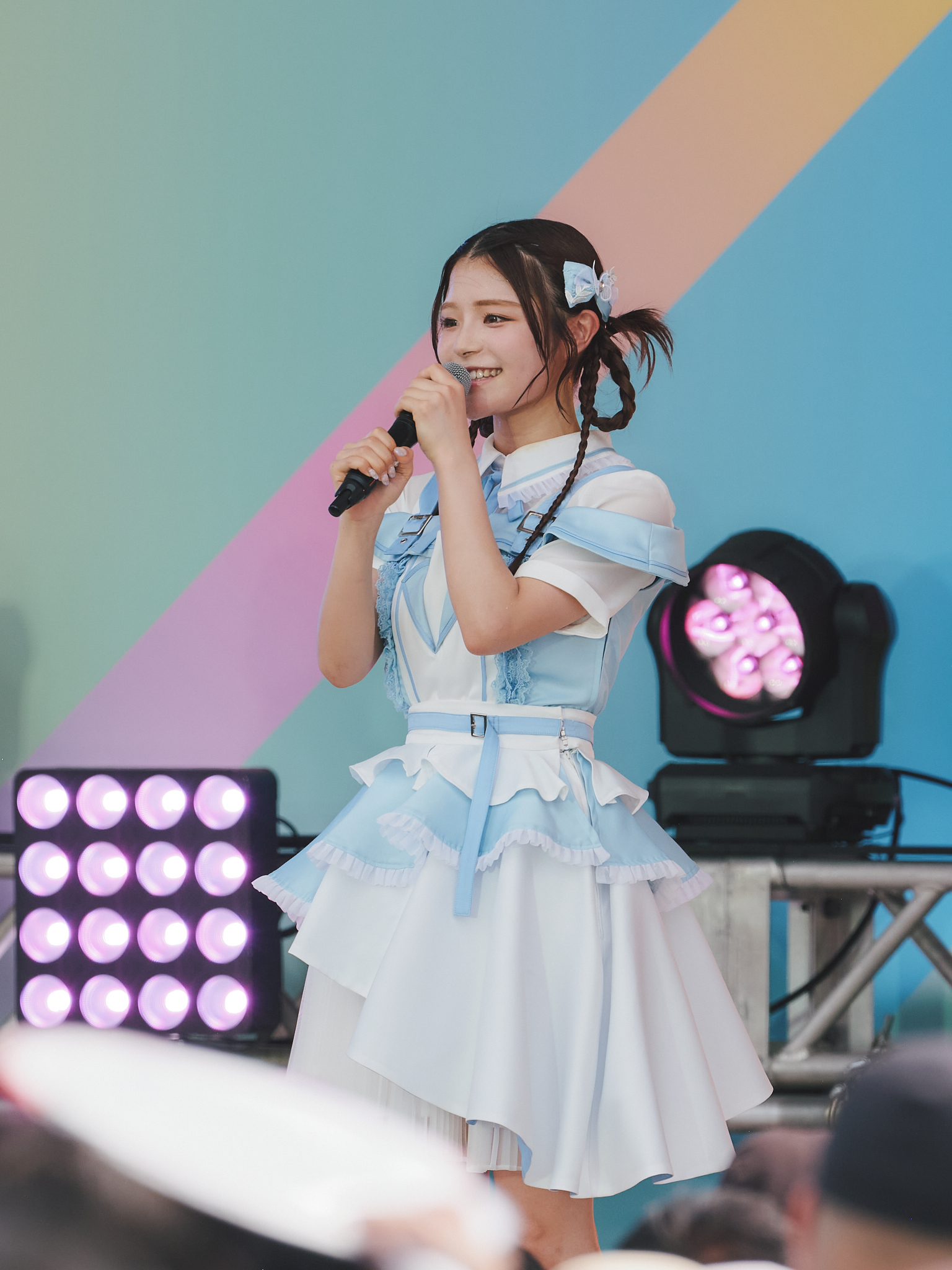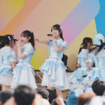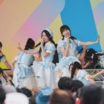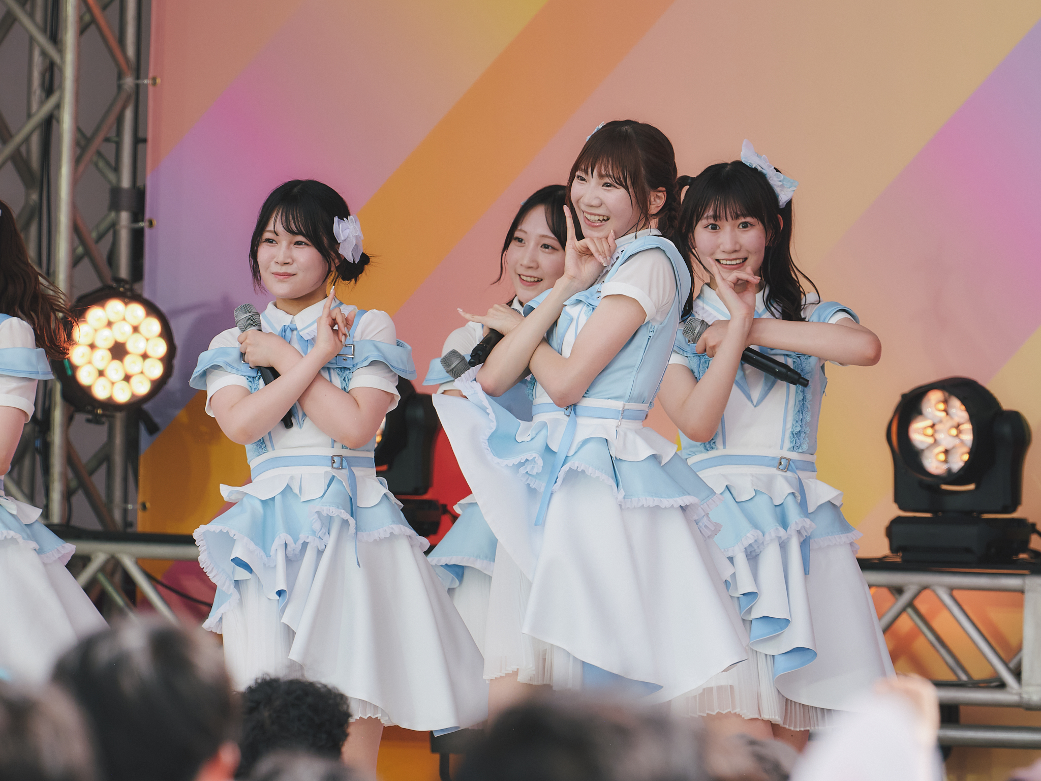 TIFには、2016年から参加しているということで、当時からの在籍メンバー西潟茉莉奈に話が振られると「月日が流れるのは早いなぁと感じます(笑)」とコメント。今回が初参加という磯部瑠紅は、「こんな大きい野外の会場で出来てすっごく楽しいです!この熱が冷めることなく最後まで盛り上がっていきましょう!」と観客に呼びかけました。