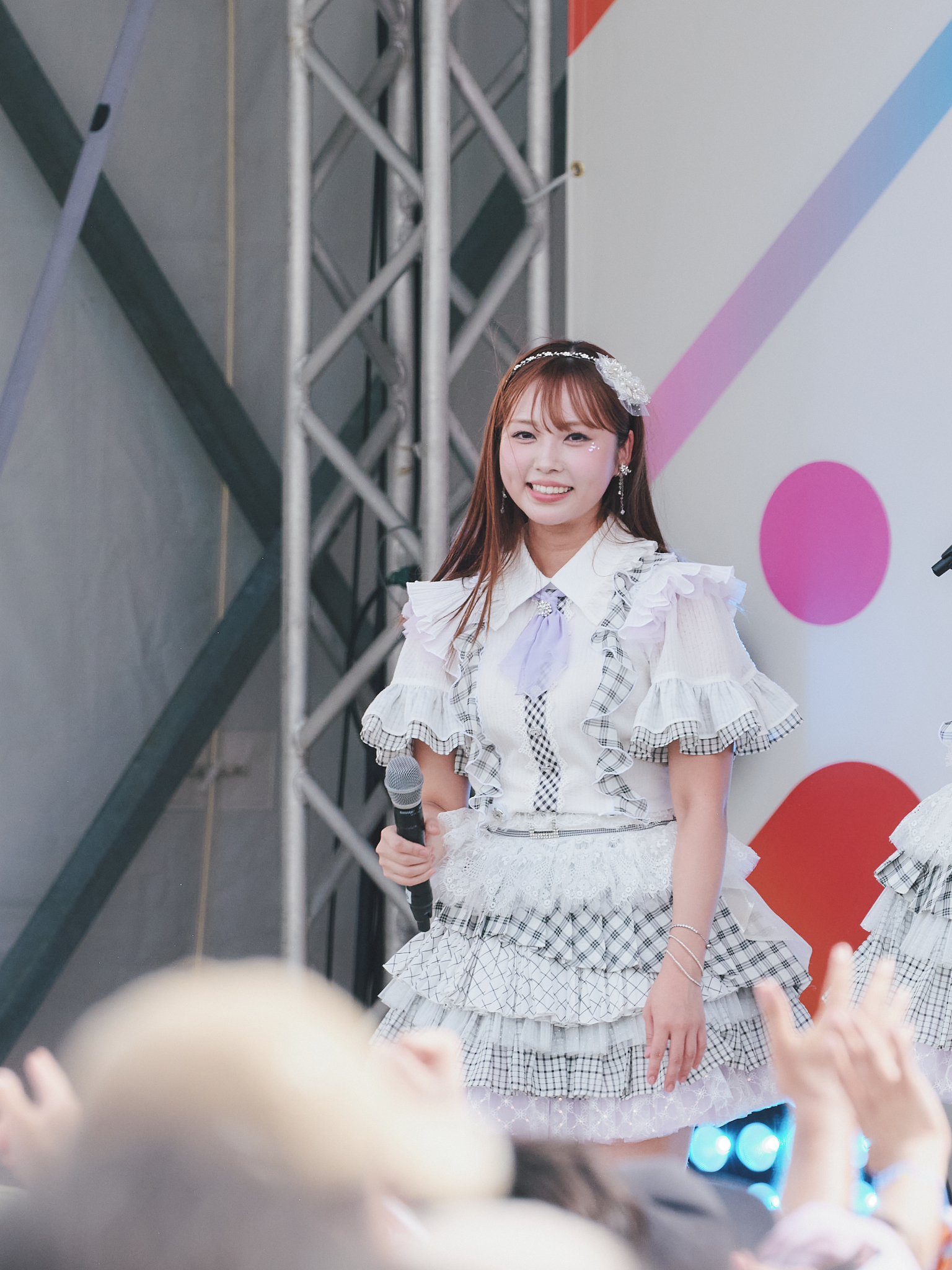 龍頭が「私と(江浦)優香は初めてヘアアレンジをして」と言うと、江浦は「りんごヘアーをしているんですけど、私たち可愛いですかー!?」と呼びかけ。その可愛さに会場も大歓声で応えると、「今日は一日よろしくお願いします!」と二人が声を揃え、熱気で満ちた会場が笑顔で溢れました。