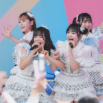 そのまま勢いを維持し、『12秒』から「みんな叫べー!」と、さらに『ビーサンはなぜなくなるのか?』で一旦MCへ。「みなさん暑さに負けずはしゃいでますか!?」とメンバーが観客と視線を合わせつつ、研究生からチームメンバーに昇格後、初ステージという龍頭綺音・江浦優香からのコメントも。