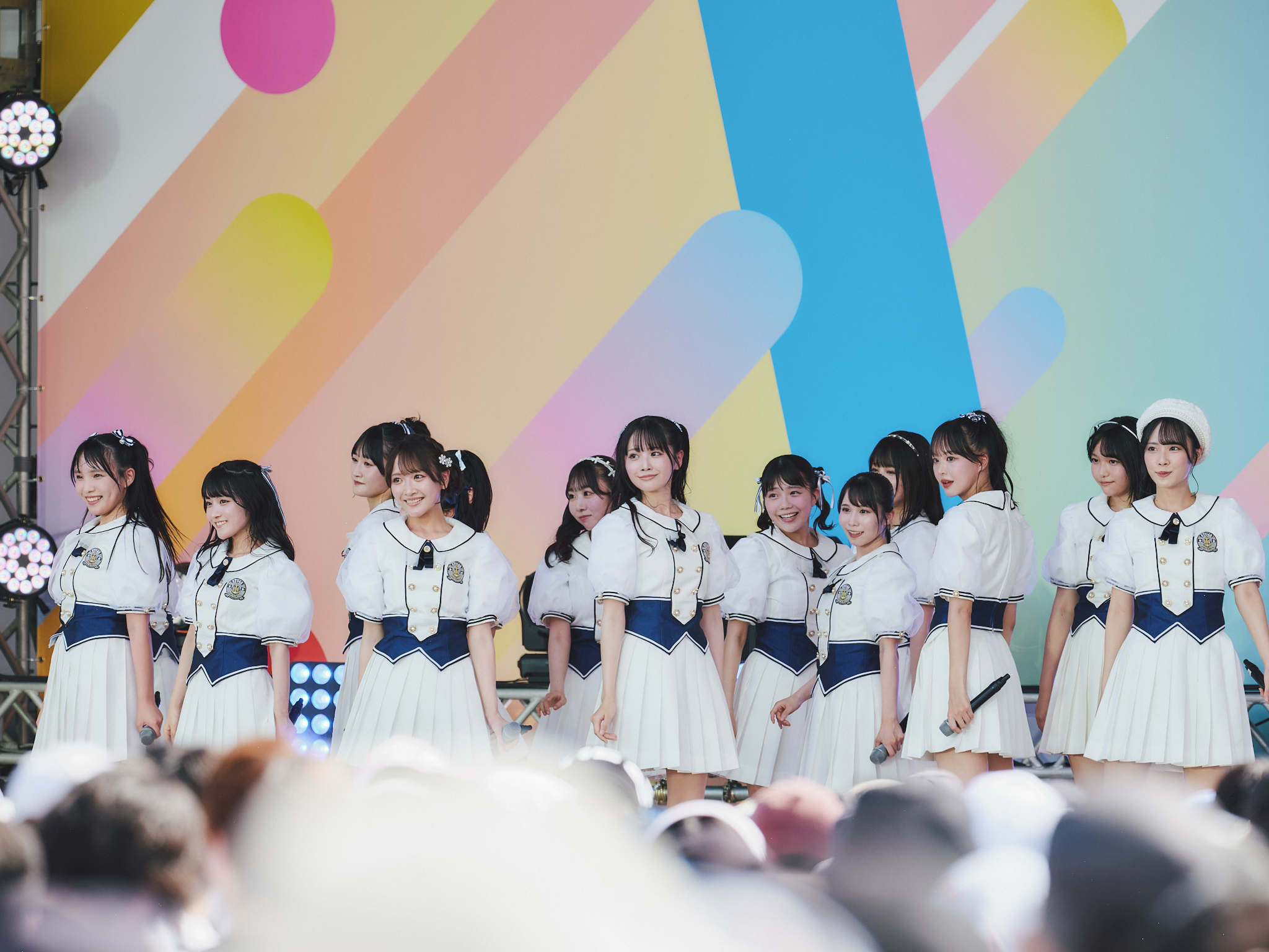 『サングラスデイズ』、『一杯の水』、『息をする心』と暑い日差しを受けながらパフォーマンスすると、初TIFの新井梨杏は「このステージに立つことが夢でもあったので、今が夢みたいです」とコメントし、会場も笑顔があふれます。