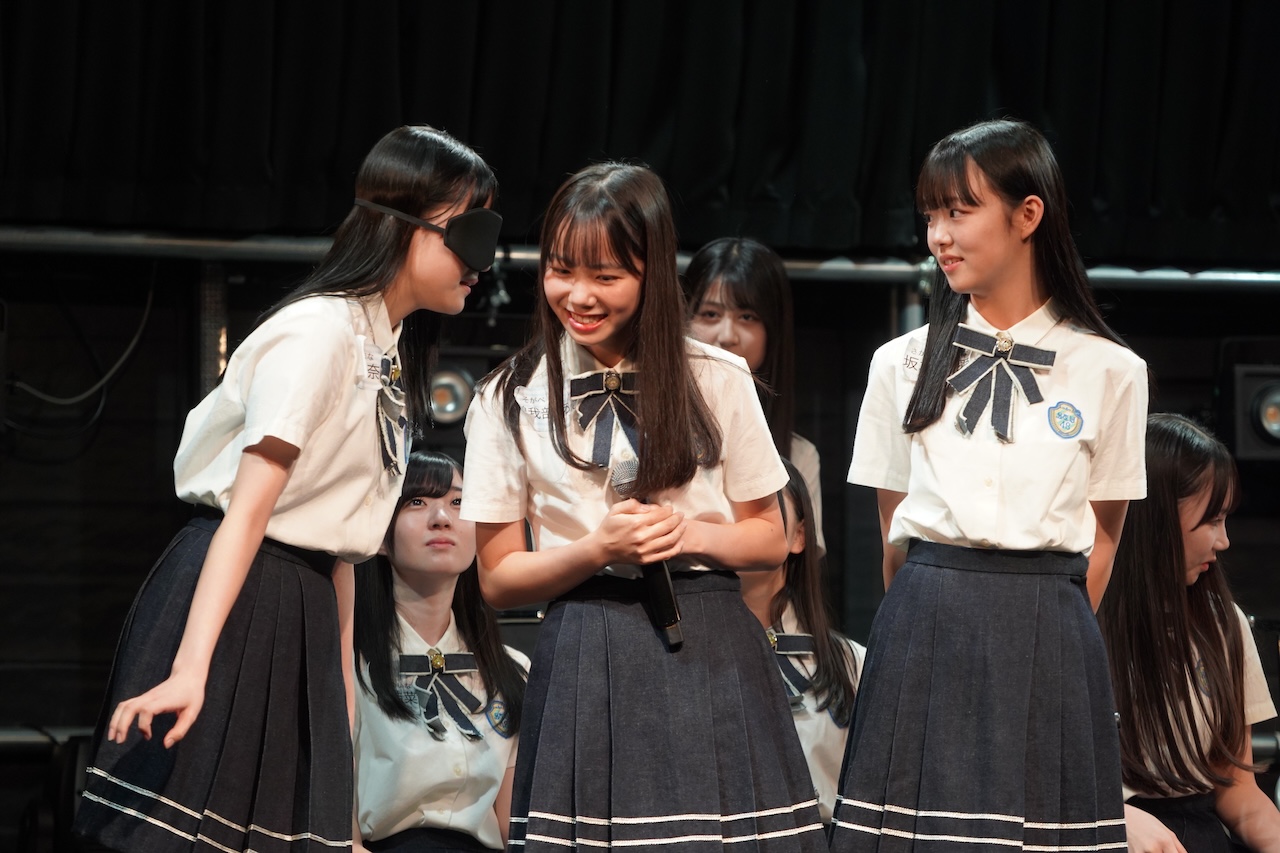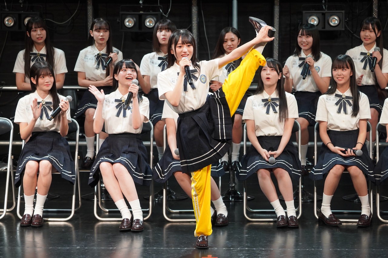 続く2部では、また違った一面を披露。トップの横井結菜はオーディション時に披露した“レモンを真顔で食べる”芸で客席を笑わせ、田中奈菜子は前方倒立回転を成功させてドヤ顔を見せ、屋木優菜は22秒でルービックキューブの1面を完成させるなど、バリエーション豊かなPRが繰り広げられました。