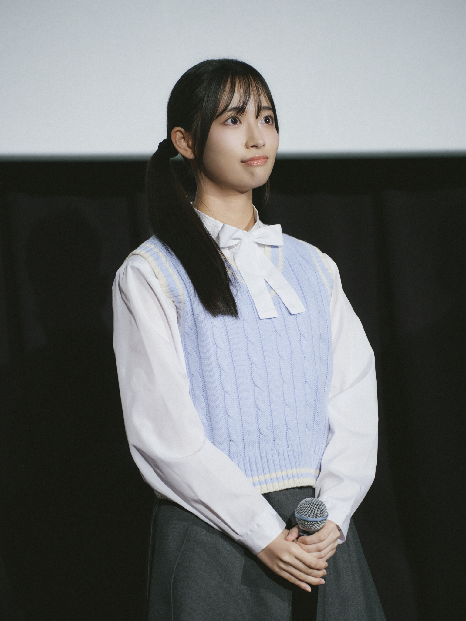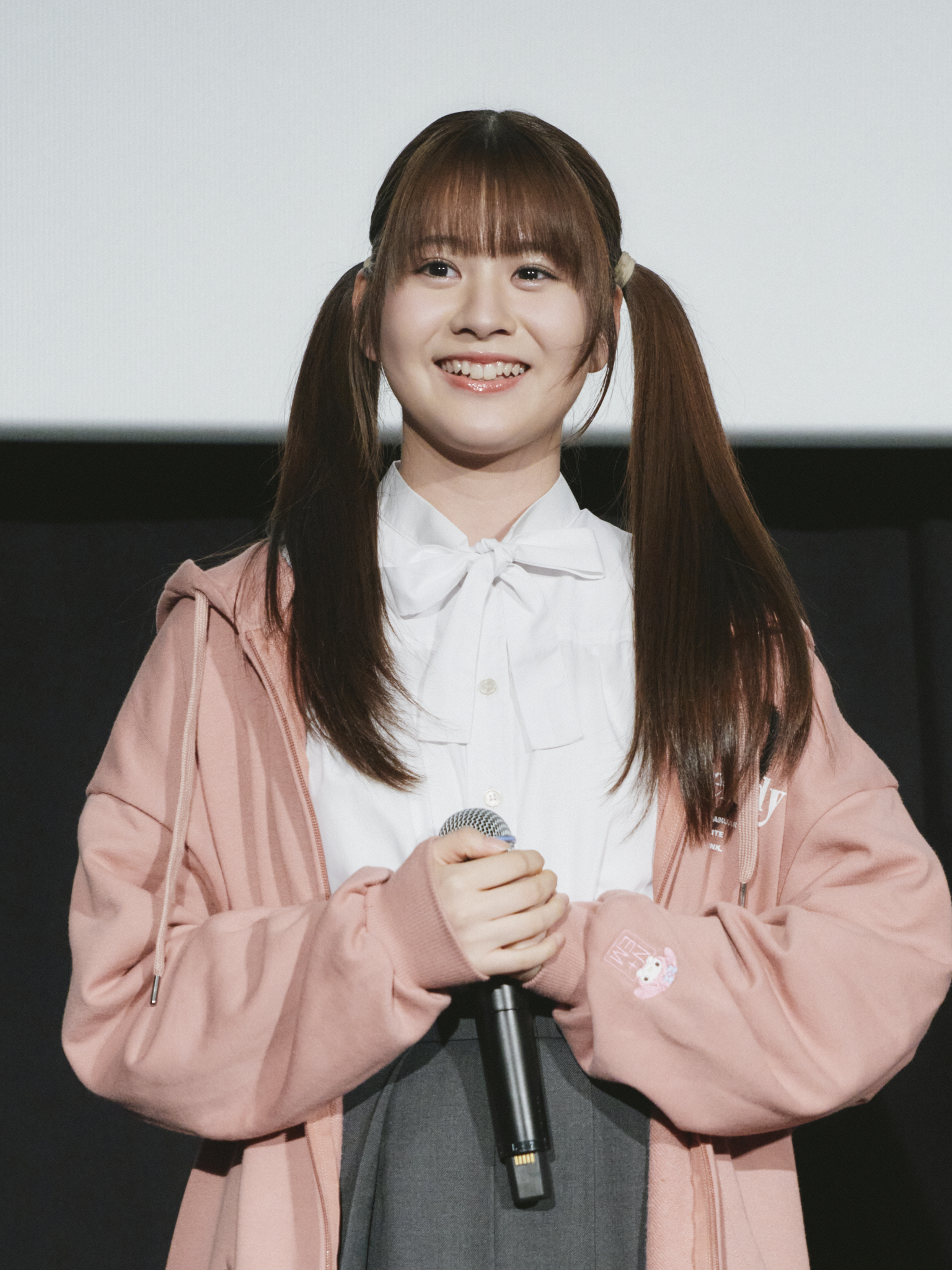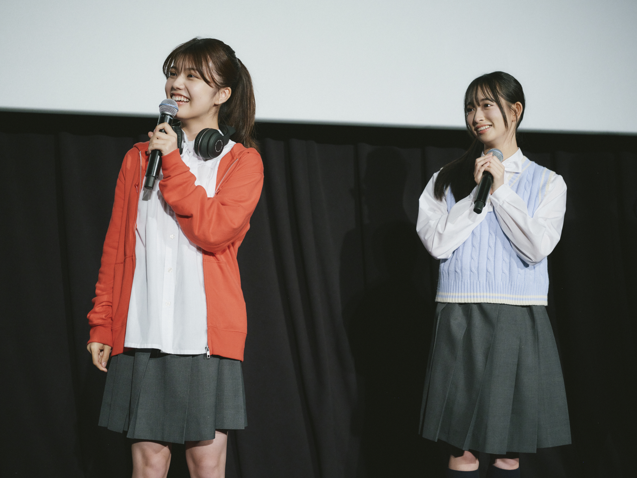 蒼井が「りるあは茶髪になったので…」と劇中と髪色が変わったことに触れると会場も苦笑。小田監督から「やんちゃになった?」とのツッコミもあると、それを見ていた松田は、自身が演じる花奈のファッションを見て、「(シャツを)しまわない感じだし、ヘッドフォンもやんちゃ」と語ります。