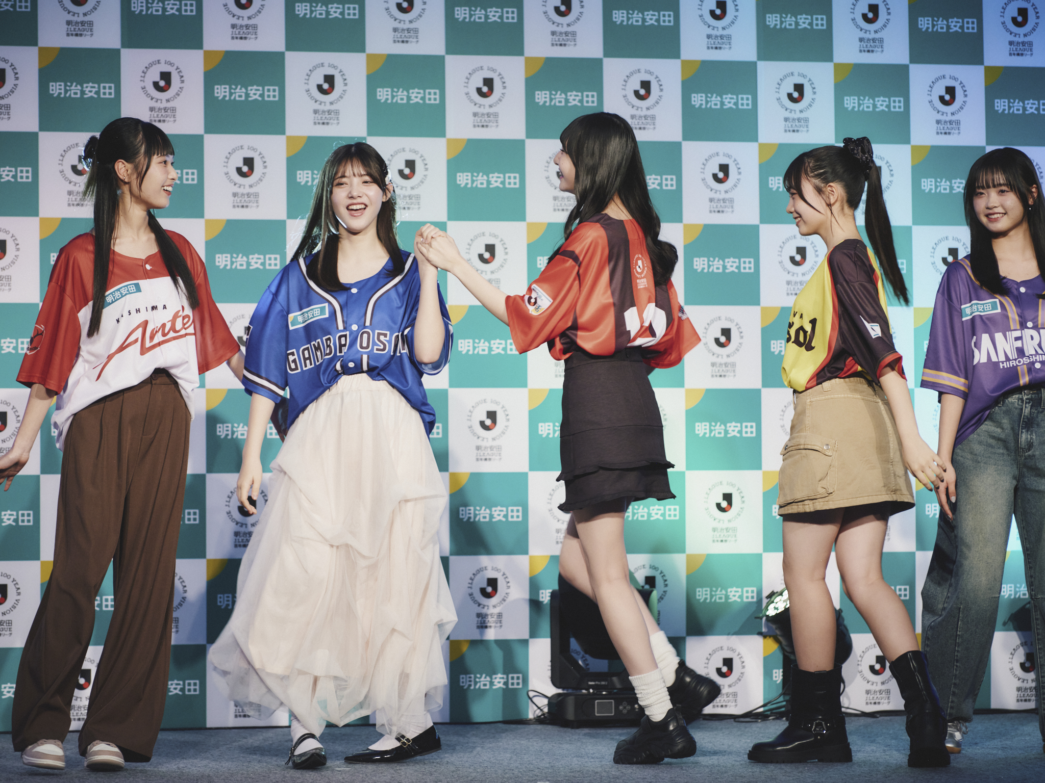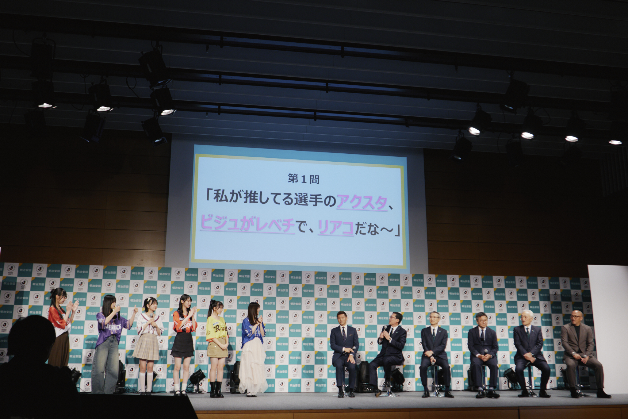 オリジナルベースボールシャツ着用コーディネートを披露するほか、安田生命・根岸秋男会長、永島英器社長、中村篤志副社長や、日本プロサッカーリーグチェアマンの野々村 芳和、またJリーグ選手OBの播戸竜二、小野伸二に若年世代の“推し活”ワードクイズを出題するなど、若年世代のJ活にエールを送りました。