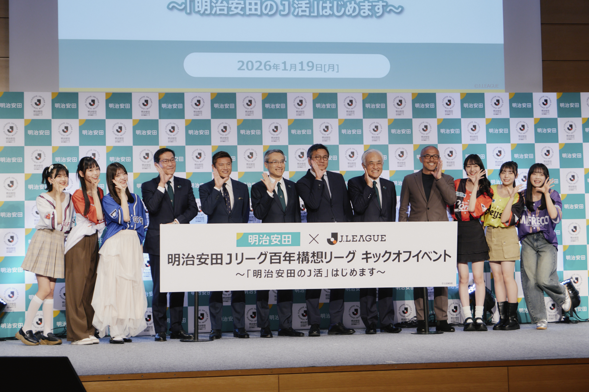 明治安田生命保険相互会社は、Jリーグの「移行期特別大会」へのタイトルパートナー協賛とともに、Jリーグのファン拡大を目指した取組み「明治安田のJ活」を発表。2026年1月19日(月)には、明治安田ホールにて【明治安田Jリーグ百年構想リーグ キックオフイベント 〜「明治安田のJ活」はじめます〜】を開催しました。
