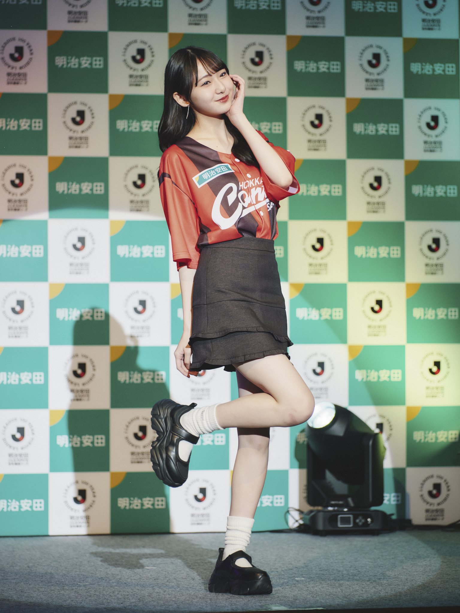 根岸会長、永島社長からこれまでの安田生命とJリーグの歩み、また中村篤志副社長、播戸竜二、小野伸二からこれからへの若年世代へのアピールへの意欲が語られると、ニコラ・ニコ☆プチモデルによるファッションショー。