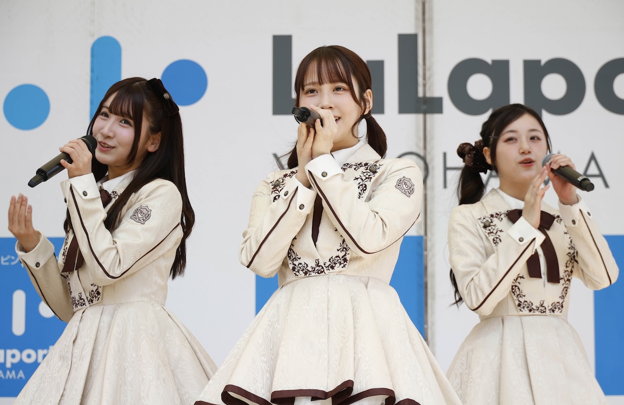 また、ららぽーと横浜にて4thデジタルシングルのリリースイベントも開催され、メンバー16名が白熱のパフォーマンス。最初にメインメンバー7名が桜の花びらをあしらったデザインの白と桜色の優美な衣装で登場し、4thデジタルシングルのメイン曲「君の居場所、僕の居場所」を華麗に。続けてカップリングメンバー9名に入れ替わり「Chain of Life」を披露しました。