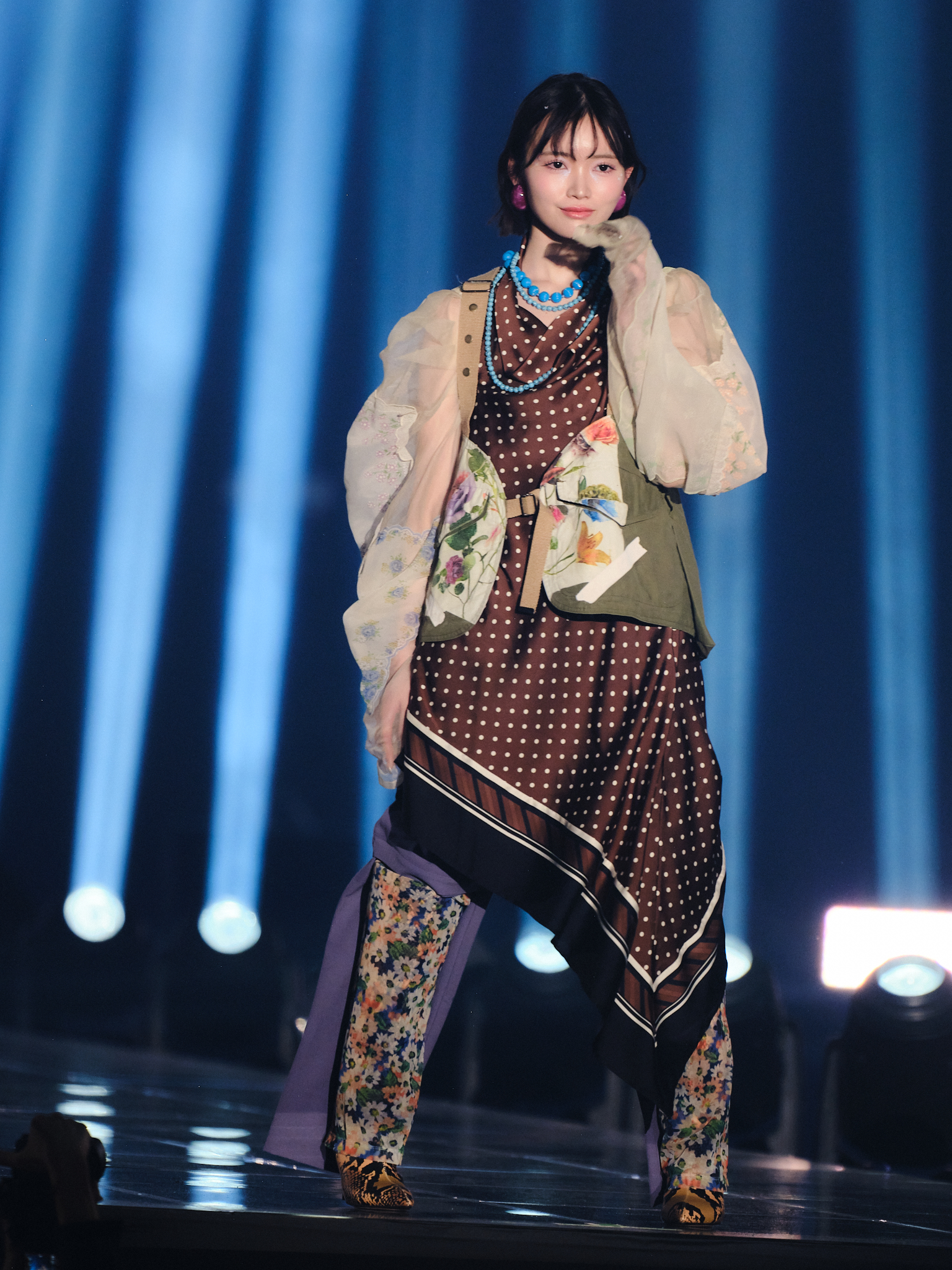 各メンバーは、普段のアイドル衣装とは一味違う、エッジの効いたハイファッションに身を包み、堂々としたウォーキングを披露しました。