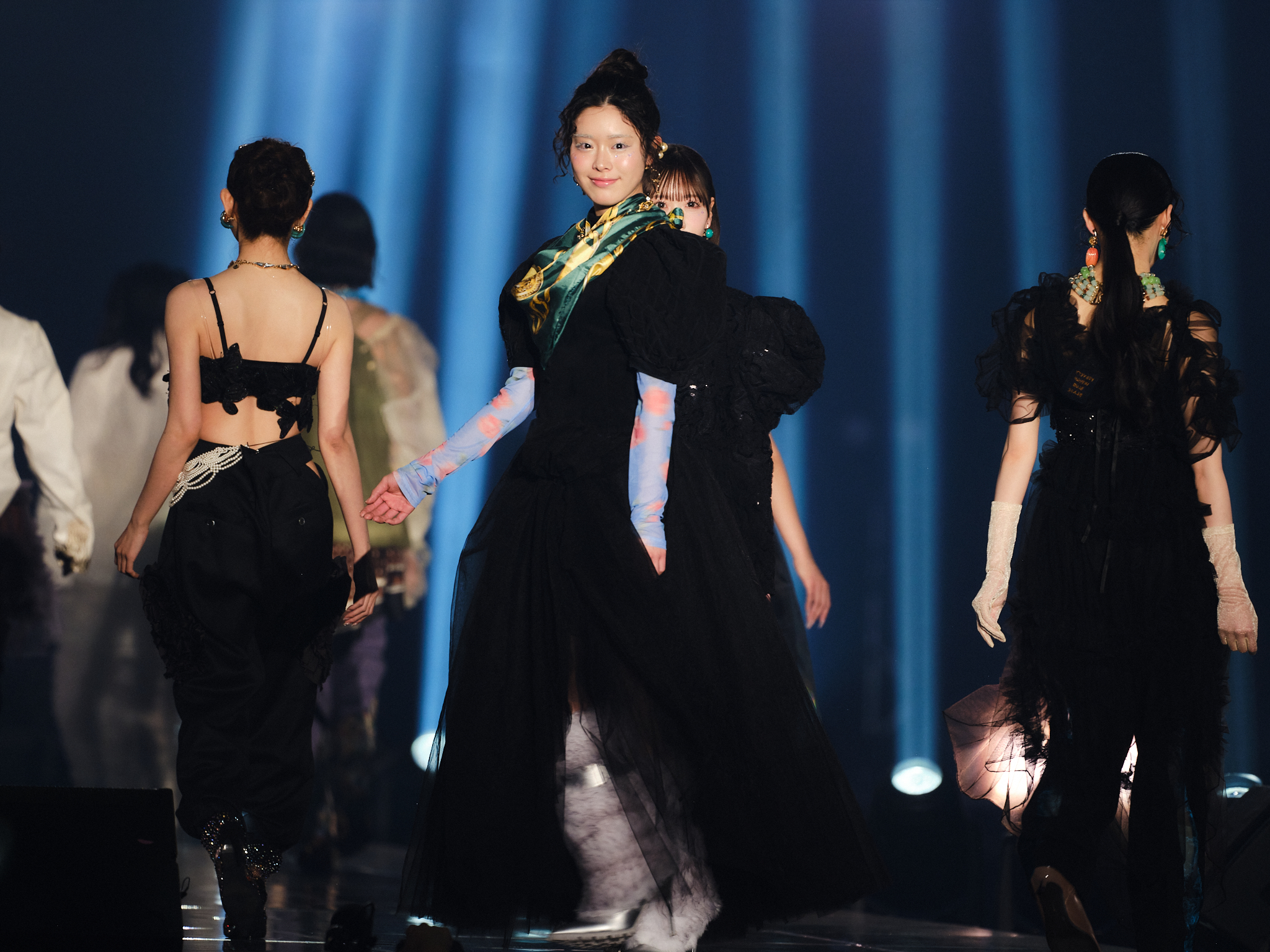 今回のステージテーマは「SHEER & BRIGHT BUTTERFLY」。未来に向かって蝶がサナギから羽ばたくまでの過程をイメージした、幻想的な演出が取り入れられます。ランウェイでは、トレンドのシアーやシースルー素材をベースに、リラックス感のあるラグジュアリー(レイジー・ラグジュアリー)をミックスした、TGCらしいファッショナブルなスタイリングが展開されました。